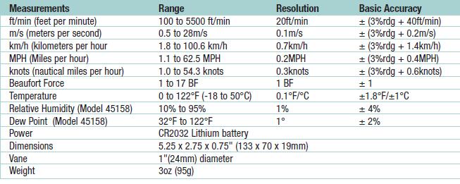 EXTECH 45118迷你葉輪風(fēng)速儀技術(shù)參數(shù)